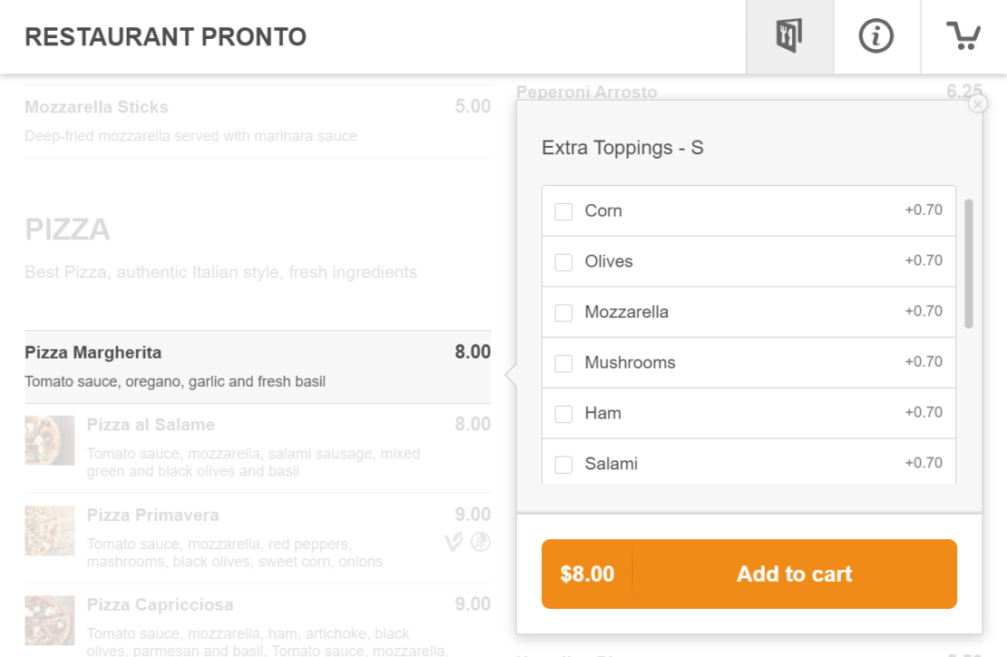 A great way to upsell online is by providing add-ons such as toppings. The best instrument for upselling online is the online ordering system from GloriaFood.